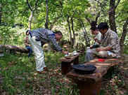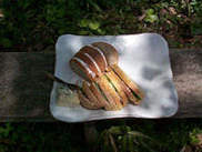 〈作り方〉 豚バラを塩水に2日程漬け水気を切って風とうしのよいところで乾かす。キャンプ用薫製ドラムで薫製にする。